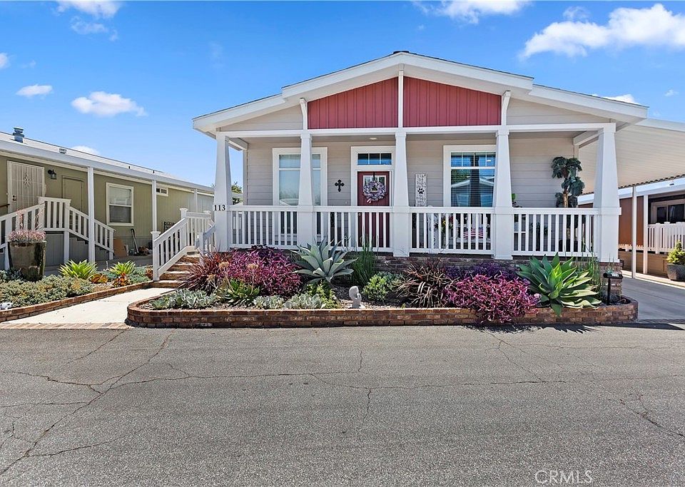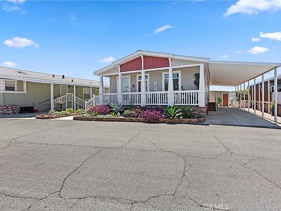 Swanky Senior Mobile Home is waiting for you. This home is being sold by the original owner. The home features a large living room with stone fireplace, built in custom bookcase shelves, crown molding and high tray ceilings. It is adjacent to a beautiful kitchen with large island creating that open concept for entertaining. The windows are covered with blinds and custom ceiling fans are throughout this lovely home. Kitchen features plenty of self-closing wood cabinets, recessed lighting and built-in stainless-steel appliances as well as a large stainless-steel refrigerator. Vinyl wood floors can be found in the kitchen, bathrooms, inside laundry and hall. There is a laundry room right off the kitchen with plenty of storage. Master bedroom has an ensuite with luxury soaking tub, separate walk-in shower and dual sinks as well as a spacious walk-in closet. There are an additional 2 large bedrooms both with closets and one bedroom has a slider and built-in wall unit dresser. Natural light fills every room as well as a skylight in the guest bath. Attached is a carport with room for 3 cars and shed for storage. Come and enjoy the amenities with heated swimming pool, indoor jacuzzi, billiard/card room and clubhouse as well as an exercise gym. Bored? Shuffleboard anyone??? There is also a dog park for doggie's enjoyment. Schedule your appointment today.