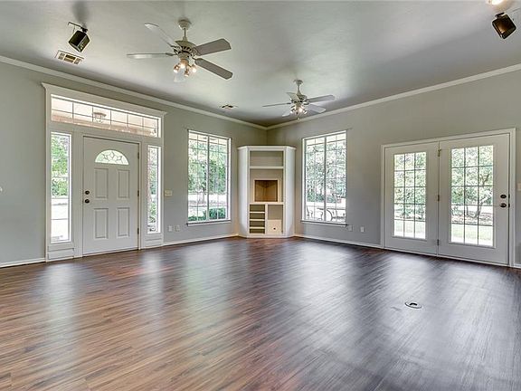 This adorable home is a real jewel located on over half an acre! Home is surrounded by wooded acreage so it feels even bigger. Home has been meticulously cared for plus it has new wall paint, freshly painted white trim and kitchen cabinetry, carpet, and vinyl flooring last month, and a new hot water tank in June 2018, A/C in 2016, microwave in 2017. Kitchen is open to living with bar seating, a pantry, tall ceilings, and tons of natural light. Don't let the square footage fool you! Every inch has its purpose, no wasted space here! Laundry room has built in desk doubling as a study nook. Two bedrooms and two full baths. Master bedroom has larger bathroom and spacious walk in closet. Country life in the city- just minutes away from I-35, Broadway, restaurants and shopping! Enjoy wild life, nature, a patio, and plenty of room to throw the football. Seller is leaving metal shop with room for 2+ more cars and both sheds for extra storage. Make this your home, sweet home!