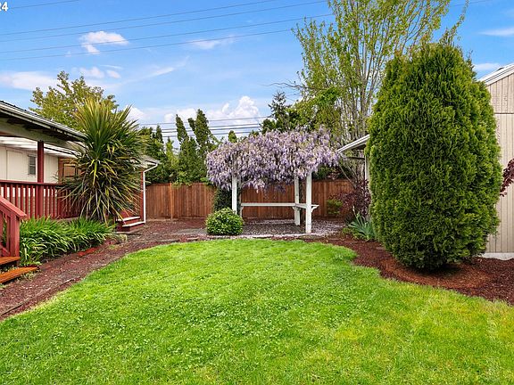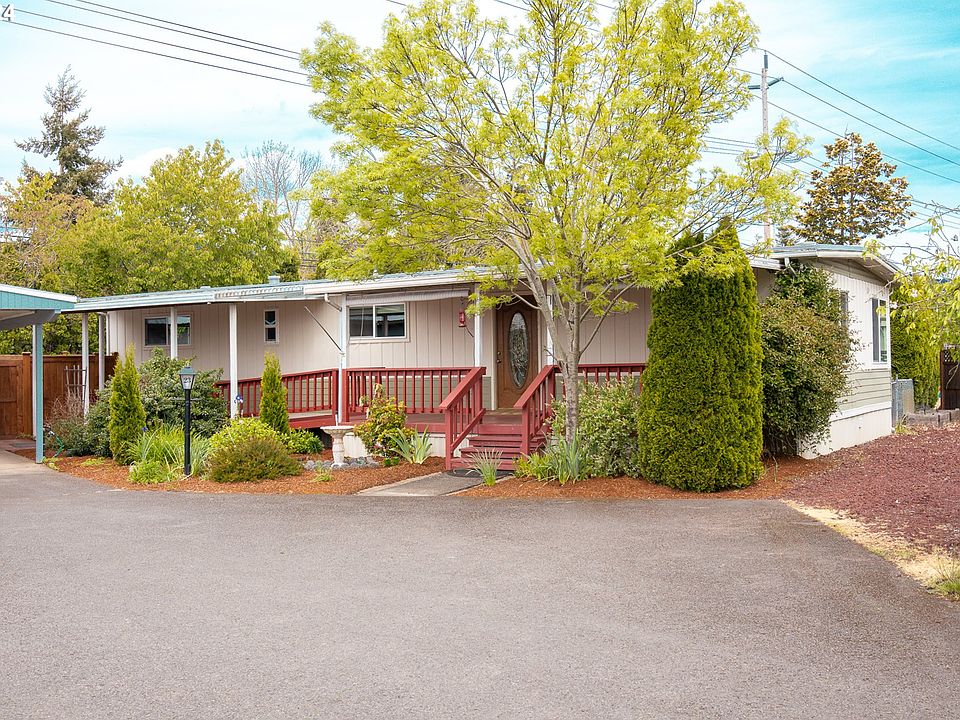 Welcome to Filbert Grove, a resident-owned 55+ manufactured home community! This 2 bedroom, 2 bathroom, 1248 square foot home located in a quiet cut-de-sac sits on one of the largest lots in the community, and features covered front and back deck, RV parking, carport, hot tub, air conditioned tool shed, and well kept landscaping, as well as new: furnace, heat pump, vinyl flooring, interior paint. A new wood fence with access to a walking path was installed in 2022 as well as membrane roof in 2023 that comes with a 10 year warranty. The community also offers several amenities, including pool tables, kitchen, meeting area, and television. This fully renovated home is move in ready!