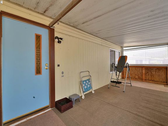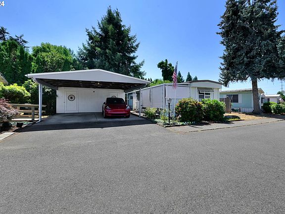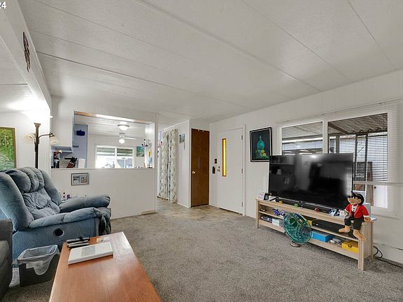 Centrally located in Filbert Grove Co-Op, Lane County's first Resident Owned Community. 55+ community with recreation room. Open floor plan with pop out in living room and indoor utilities. Many recent updates have been done including a new Goodman heat pump and furnace 2023, New carpet and vinyl 2022, Amana oven/range 2021, newer electrical service and new leaf guard filters. Nice covered carport and storage area. Covered front porch and backyard. This one is priced to sell.