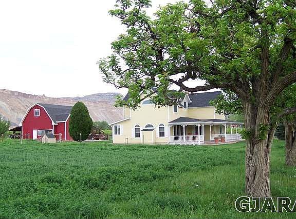 This property has it all! Picture postcard setting on 5 gated acres currently planted in grass alfalfa & fukky fenced. Built in 1910, updated with a new addition in 2001. Newer furnace, water heater, kitchen appliances. Hardwood floors throughout, cozy gas log fireplace in living room, spacious kitchen with view windows, home office, formal dining room, wrap around front porch & large b arn with plenty of room for cars, toys, horses or convert to studio.