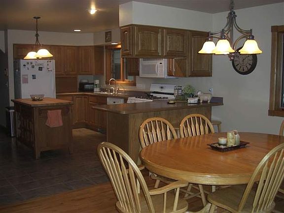 Secluded in the woods - 4 bedrooms, 3 baths, 2 car garage on 5.02 acres with light covenants. Ranch floor plan with open kitchen/dining & living areas. Master suite has walkin closet & bath with double vanities, separate room for shower/stool. Doors from master suite & dining to 1000 sq ft deck that overlooks the yard & woods. The laundry & second bedroom, which is attached to the second bath, are also part of the main floor. The lower walkout level has large family room, 2 bedrooms with large closets.