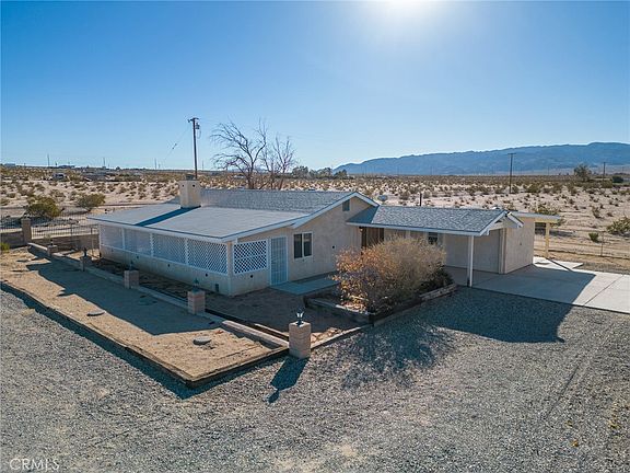 This rare 10 acre (horse) property on a paved road will be on the market soon. This home boasts 3 bedrooms and 2 full baths in the main house while it has an attached ADU with it's own entrance. Inside this home you will find a large master suite with a wood burning fireplace, 2 closets, dressing area and separate tub and shower. It also has French doors leading to the covered patio. There is a dining room which could also be used for a 4th bedroom / office in this home. This room also has French doors leading out to the covered patio. The kitchen comes with the refrigerator, oven, microwave, dishwasher and a wine refrigerator. (appliances approx. 2 years old). All you need are your pots, pans and a bottle of wine to start enjoying your kitchen. Inside the studio you will find a Murphy bed, small kitchen area and a bathroom with shower. Outside you will find a fenced yard for your privacy along with a detached 988 sq ft 3 car garage. This home has central heat and air, an evaporative cooler and a whole house water filtration system. Like to work in the garage? The garage is also cooled by an evaporative cooler. This home has a fully paid for solar system WITH battery backup ( $66,000 system). Come enjoy the desert views while still being fairly close to shopping. If you would like to enjoy Joshua Tree National Park, it is not far from this wonderful property. Don't wait as properties that offer this much for so little are a rarity.