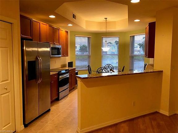 GREAT VALUE in unmatched Estero location! First floor, three bedroom, 2.5 bath, nearly 2000 sq. ft. carriage home in Meadows of Estero lives more like a single-family home! Lanai has views of the lake and fountains that light up at night. Distinctive Mediterranean style accents include columns, arches, tray ceilings. A large foyer opens into the great room, dining room and kitchen with breakfast bar and bay window. Home has oversize tile in great room, step-in showers in master and guest baths, large walk-in closets. Sold unfurnished. The Meadows is a friendly, active community: amenities include a saltwater pool and spa, well-equipped fitness center, and clubhouse with onsite management. Meet your neighbors for yoga, happy hour, game nights, and holiday events. Unmatched location in the center of everything! At your doorstep are 4 upscale malls for shopping and dining, FGCU, international airport, easy access to I-75 and Gulf beaches.