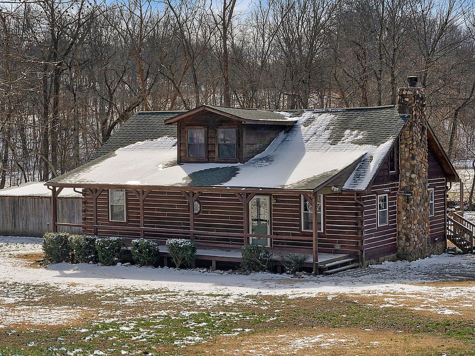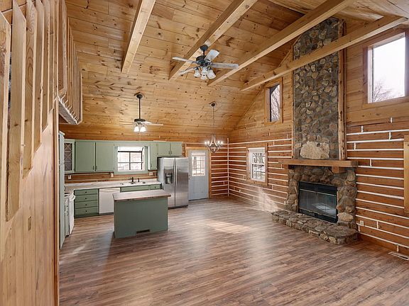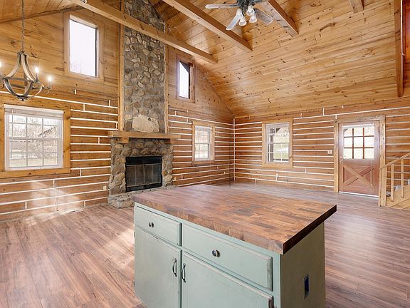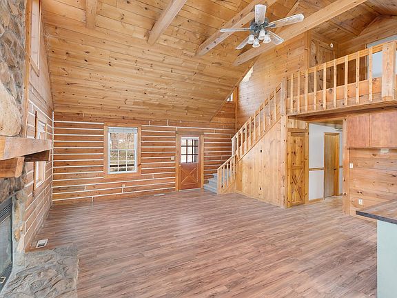 One of a kind updated cabin on almost two beautiful acres is available now. Year round wet creek runs the whole length of the property! Sit by your fire pit and listen to the water. Half of the property is fully fenced for horses and other live stock to include a two stall horse barn. Inside you'll find soaring ceilings with exposed beams and a stone fireplace all the way to the top. Completely open floor plan. Distressed/rustic kitchen cabinets with butcher block island.
