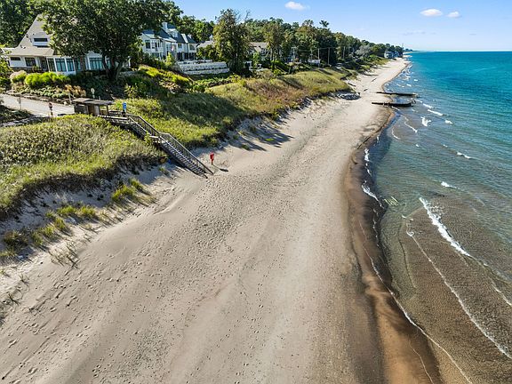 This stunning lake house, just an hour from Chicago, offers an escape to a world of serene beaches, sunshine, and lush forests. Nestled in coveted Duneland Beach, on 3 parcels, this home blends historic charm with modern comforts, providing a peaceful retreat from the city's bustle. With five bedrooms and four baths, it's perfect for both intimate getaways and larger gatherings. Find your inner chef in the beautifully appointed kitchen with all the modern amenities one would expect. Relax in the spacious living room with a sleek fireplace or in the sunroom/family room surrounded by stunning windows bringing in magnificent views. Multiple outdoor areas are there for you to relax and unwind in beautifully designed spaces, featuring multi-level decks, a gas outdoor fire table, a gas grill and a screened-in porch that feels like a cozy treehouse, all surrounded by 100-year-old trees with glimpses of Lake Michigan's sandy shores. Inside, the home is equipped with a high-efficiency HVAC, a tankless water heater, a generator, and ample storage to ensure a comfortable stay. As part of a vibrant golf cart community, you'll have access to a park, playground, pickleball and tennis courts, and a basketball court. Plus, the additional three-car parking pad provides ample space for guests and activities.