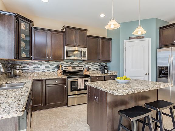 Gorgeous, custom home w/ stone accent on the front exterior. Open Floor Plan w/ cozy Living Room with gas fireplace. Spacious Kitchen w/ 42" cabinets, granite counter tops, custom tile back splash & SS appliances. Master Bedroom has WIC and Master En Suite w/ sep garden tub, shower & dual vanities. WIC's in the other 2 bedrooms! Plenty of storage in this home! Home sits on a large corner lot, that has a 6 ft. vinyl privacy fence and deck to relax on. Community Pool as well! OPEN HOUSE SUNDAY-3/24 from 2-4PM