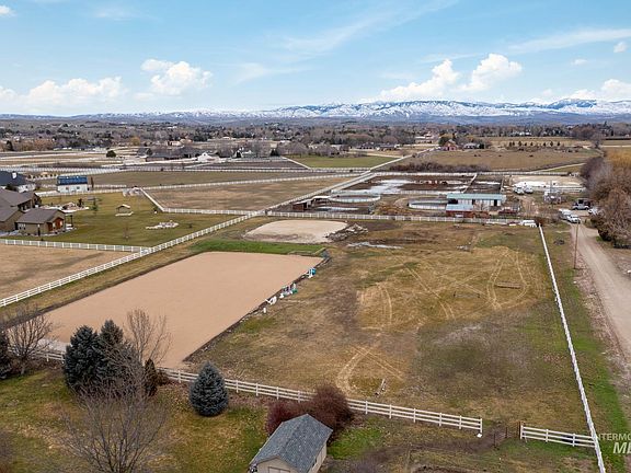 Beautiful horse property with views, gorgeous ranch style home in the heart of Eagle horse country set well back off the road, very private, no CCR's., yet close to shopping and Eagle foothills. Granite counters, tile floors, large wood burning fireplace, giant great room and open floor plan. New 4 stall barn, auto waterers, tack room. Mature landscaping, lush pastures, surrounded by pristine white vinyl fences, excellent irrigation, dressage/jumping arena, some x/c jumps, trailer parking and a 30 x 40' shop.