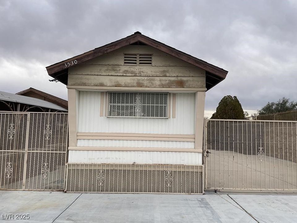 Nice 1 bedroom 1 bath manufactured home that has been converted to real property, located in northeast Las Vegas, near shopping and restaurants, and with easy access to the I-15 freeway. The kitchen features laminate countertops and vinyl flooring. This property also includes a separate unpermitted addition that has 3 bedrooms, 2 baths, living room, dining room, and a kitchen. This property including, but not limited to the unpermitted structure, are being sold as-is with no guarantees or warrantees. Show today! All figures and measurements are only approximate. Buyer is to verify schools, HOA, measurements and utilities.