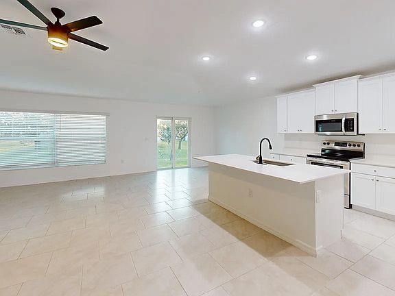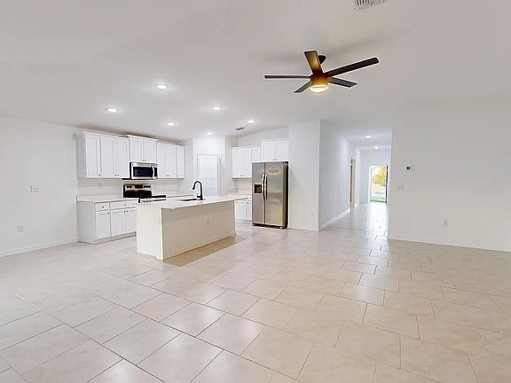 Nestled in Cape Coral's tranquil neighborhoods, this exceptional 4 BR/2Bath/2 Car garage single-family home offers an enchanting blend of modern comfort and tropical paradise living. Welcome to your very own haven of relaxation and luxury. House is unfurnished and you can furnish and decorate it as per your taste. This new single-story home design showcases an open-concept main living area consisting of the family room, dining room, and large kitchen, which features a walk-in pantry. This home features a total of four bedrooms including a spacious owner's suite with a walk-in closet and a luxe bathroom with dual sinks. Tile throughout home. Epoxy garage floor.. Privacy white fence is negotiable.