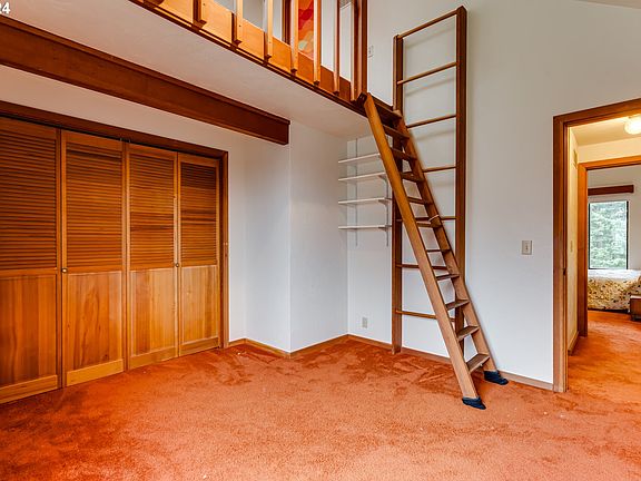 Fantastic Views! "The Wedge" is spectacular and conveniently located, architecturally designed home in south Eugene school district. 2 bedroom and 1 1/2 bath on county records has a bonus room to serve as 3rd bedroom and lofts to make 5 sleeping areas! Close to parks, schools and shopping. Dead end street make this a wonderful opportunity for elegant city living. Lots of room to entertain on two decks both with incredible views. Heat pump and wood stove give a cozy feel to the spacious 1,693 Sq ft. Seller to contribute 3% of sale price to buyer closing costs and is also open to seller carried financing. Come take look and enjoy the natural setting with sophisticated character.