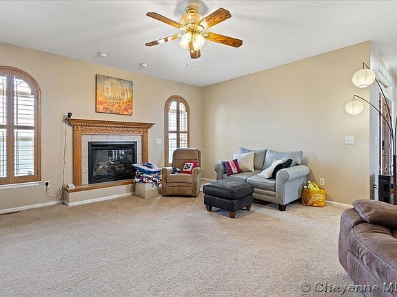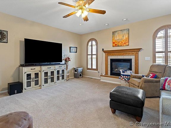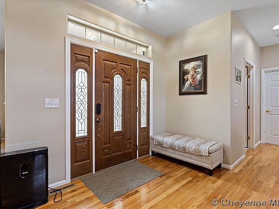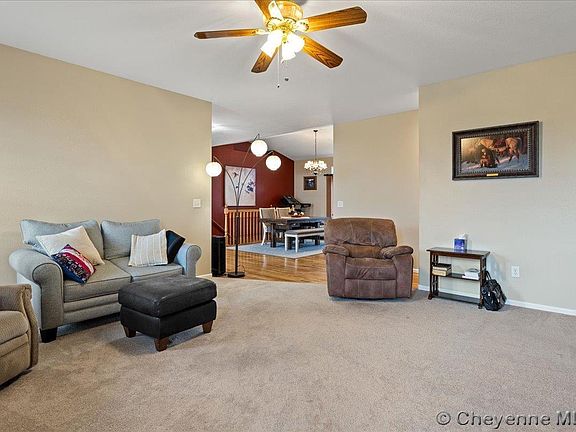 Welcome to your 4 bedroom and 3 bath dream ranch home! Country living at its best!! This stunning property offers the perfect blend of modern elegance and rustic charm. From the moment you arrive, you'll be captivated by the impeccable landscaping and inviting curb appeal. This home sits on 4.74 acres so bring your horses! Step inside to discover an open concept living space bathed in natural light, featuring custom finishes, and hardwood floors in all the right places. This home includes a formal dining room and family room. The gourmet kitchen is a chef's delight with plenty of counter space and cabinets. From the kitchen you can step out to the upper deck and enjoy the view! The master suite is a true retreat, complete with a luxurious ensuite bathroom and a huge walk-in closet. Additional bedrooms are generously sized, providing comfort and privacy for family and guests. Let’s not forget about the spacious walk out basement that includes a large bedroom, enormous living room space with built in shelving, an office/den, and a bathroom. Step outside and enjoy the tranquility of the country living with all the modern amenities! Close to shopping, and downtown Cheyenne. ALL PAVED ROADS TO HOME! NO GRAVEL ROADS! Air conditioner is 4 years old; roof is 4 years old, 50-year shingles, exterior of home was painted 2 years ago. Don't miss the opportunity to make this exceptional ranch home yours – it's a true gem that offers unparalleled beauty and comfort.