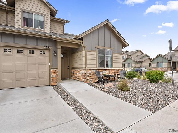 End unit townhome with Main Floor Master Suite, attached garage, & huge basement! End unit Aspen model at Painted Ridge Townhomes features 2 bedrooms on main floor. Main Floor Master Suite has 5 piece bath & large walk in closet, while other main floor bedroom also has attached full bathroom & functions as a 2nd master or guest bedroom! Open floor plan as family room flows into kitchen that features quartz counters, stainless appliances & tons of counter/cabinet space. Soft close cabinets/drawers. Main floor laundry. Upper floor has vaulted ceilings, a large loft, bedroom & bathroom. Concrete back patio area offers serene relaxing. Low HOA includes snow & trash removal, landscaping, exterior maintenance w/roof! In Cherry Creek School District. Close to DIA airport, E-470, shopping, schools, parks. This immaculately kept and loved townhome will go fast!