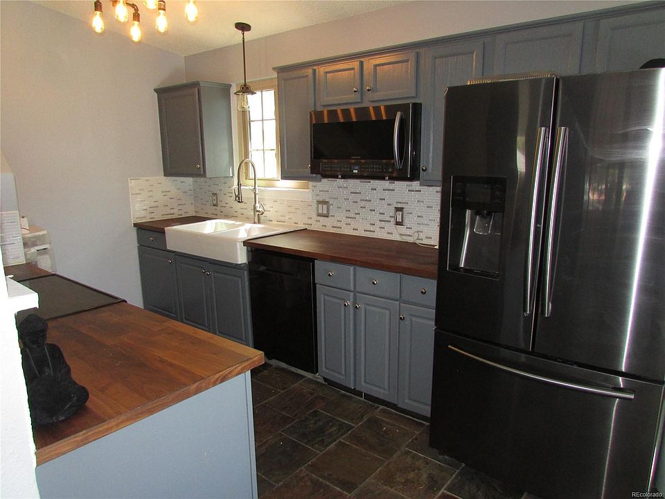 Completely remodeled home in the highly acclaimed Cherry Creek School District. You don't have to do a thing, just move in and enjoy your huge deck overlooking your quarter acre cul-de-sac lot, equipped with your very own basketball court! A gardeners delight, you can grow anything your heart desires on this spectacular lot. Directly inside from the deck you'll find a modern farmhouse style kitchen equipped with a farmhouse sink, butcher block countertops, and brand new top of the line black stainless appliances and gorgeous slate flooring. Brand new items include: roof, paint inside and out, air conditioning unit, hot water heater, carpet, light fixtures and much more. Updated furnace. Main bathroom gutted and fantastically redone. Home warranty included until Feb 2018. The home owners are not investors. A great deal of money was put into this home with the intention of spending many years here, but a job relocation requires a move. Their loss is your gain.