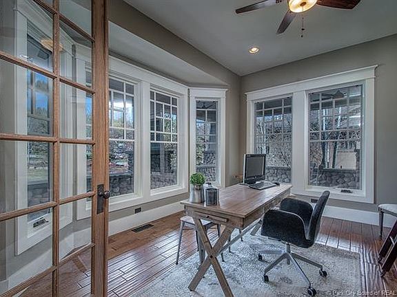 Impeccable Arts and Crafts home overlooking East Canyon Creek & Jeremy Golf Course! Featuring a spacious native stone front porch, quarter-sawn white oak cabinetry, stainless steel appliances and granite counter surfaces throughout. Spacious floorplan with 4 bedrooms, 3 1/2 baths, 2 great rooms, an office, and a large exercise room which could easily be converted to a theatre or activity room.