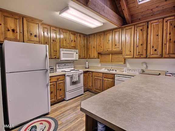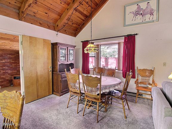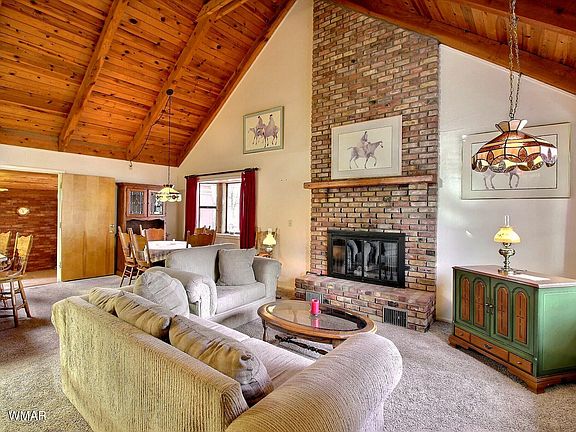 Chalet living right in heart of old Show Low. The home features an open floor plan with floor to ceiling brick fireplace to greet you upon entry. 2 bedrooms and a bathroom are downstairs and a master suite is up the stairs. To the rear of the home is a large bonus family room or study/den with access to the backyard. The large backyard has plenty of space for entertaining with grass and automated sprinklers. Plenty of parking out front as well as the space for RV on the side. Furnishings available outside of escrow.