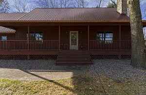 Stunning house with a cabin like feel, surrounded with beautiful mature trees and a view of your pond from the large front porch. The pond is equipped with new drain pipes, a fishing path around the pond, fully cleaned and restocked with several species of fish complete with a fountain in the center of the pond. Beautiful wood furnished interior. Tucked away like a getaway, this hidden gem is minutes away from Polaris and Downtown Galena. Features include (1st floor main bedroom) two bedroom two bath with a large loft with built in shelving, a stone wood burning and gas fireplace, a full basement with a GUN SAFE ROOM. Doors throughout the house are hand crafted by Specialty Woodwork Co. Two car garage, an electric powered barn and and cozy chicken coup. New gravel pad for extra parking