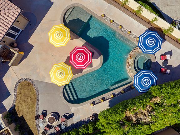 From the moment you enter the gates of the neighborhood you know that this is a special place. That same feeling washes over you when you enter the courtyard of this stately Spanish Style home. Enter through the front door into an open concept Living Room, Kitchen, and Casual Dining area. A bar is also standing ready in the main living area to serve up your favorite glass of wine or cocktail. This home showcases custom mosaic tile and travertine floors throughout. The west side of the home boasts a sumptuous Owner's Suite, a guest Powder Room, and Guest Bedroom. The East wing of the home has another bedroom with dual French doors that overlook the pool area. This wing also houses your Formal Dining Room or Billiard Room. To the front of your new escape is an attached casita and a Flex Room. that can suit a multitude of needs. Escape to the backyard for a tropical oasis with newly redesigned pool, two fire pits, and an outdoor shower! A few of the upgrades done to the property are a total redesign of the pool area and outdoor shower. Upgraded landscape design with planters, lighting and irrigation. New AC unit and new compressor for the companion unit. OWNED solar with 60 panels !There are too many items to name!! You DO NOT want to miss this home!!!