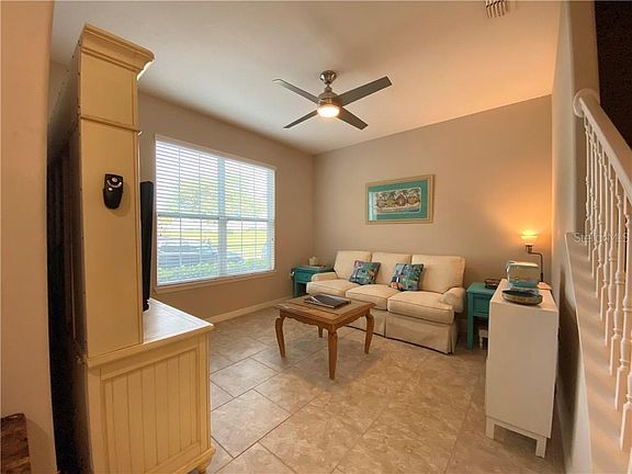 Enjoy your morning coffee while seating on your front porch and with views of the water and Harmony Golf Preserve right across the street. This move-in ready Townhome features a kitchen, dining and living room, Open concept, which is perfect for entertaining and family gatherings. There is a formal living room on the right of the entrance, this space could be used for in home school or an office. Kitchen is complete with stainless steel appliances, pantry and breakfast bar for casual meals. Master suite features walk-in closet, dual sink vanity and shower. Split floor plan has all 3 Bedrooms and two full bathrooms on the second floor for additional privacy and also a includes a half bathroom in the first floor. As a resident you can enjoy many amenities which include Buck lake (boats, fishing pier, rocking chairs and bench swing), walking trails, dog parks, playgrounds, fitness center and 2 community pools. If you love to golf, come enjoy Harmony's 4 1/2 star rated Golf Preserve. The HOA dues are paid quarterly and includes exterior building maintenance, lawn maintenance, Cable, internet and all the amenities of the community. Schedule your showing today!
