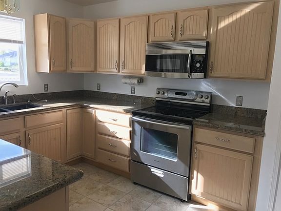 - KITCHEN: GARBAGE DISP, REFRIGERATOR, PANTRY, MICROWAVE, DISHWASHER, WOOD CABINETS, BREAKFAST BAR, ELECTRIC RANGE