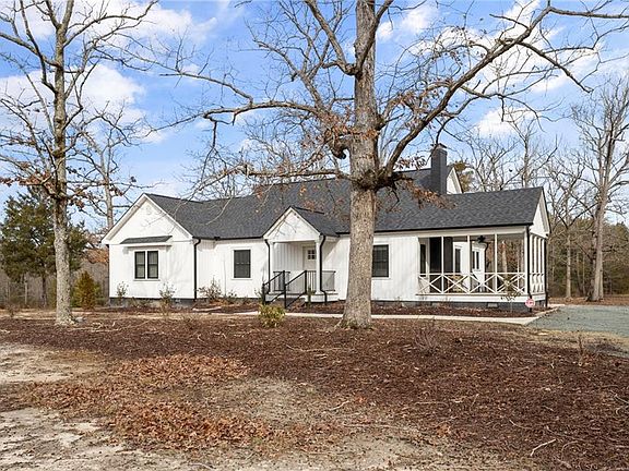 Beautiful home on 13.3 Acre property with lovely country views and pond located in SE Alamance County! The home was completely renovated with new siding and insulated windows. And the interior was updated with wood flooring throughout and granite countertops and tile flooring in the baths; new light fixtures, granite countertops in kitchen, stainless appliances including gas range, microwave, refrigerator, ice-maker & dishwasher, a large wood topped kitchen island and a tankless water heater. The living room features a stacked stone fireplace, ceiling fan and access to covered side porch. The spacious master bedroom has a ceiling fan and the bath has double sink top, large walk-in shower, and closet with built-in shelving. Bedroom 2 has wood flooring, nice closet & ceiling fan. Office has wood flooring and ceiling fan. There is a barn/storage building and a double detached garage; the property has wooded and cleared areas and a nice pond. Don't miss out on this beautiful home! has wood flooring and ceiling fan. There is a barn/storage building and a double detached garage; the property has wooded and cleared areas and a nice pond. Don't miss out on this beautiful home!