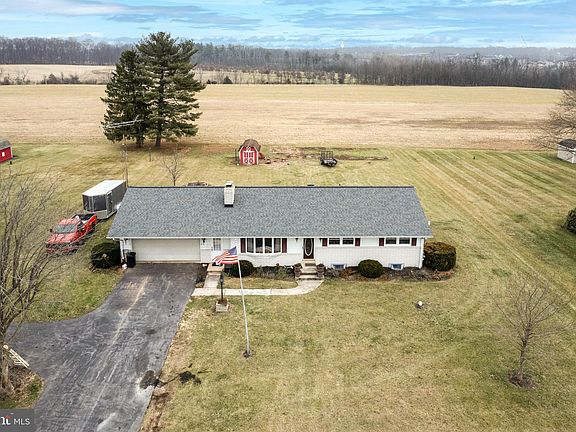 Opportunity knocks in this country rancher with 3 bedrooms and 1 bath on nice 1/2 acre lot. The savvy buyer will appreciate these great updates: new roof, HVAC, deck, SS liners in chimneys and a woodstove. Spacious home with huge basement on a level lot with shed and 2 car garage just outside of Taneytown. Beautiful property backs to new public park. Make sure you check out the recent sunrise and sunset pics the owner took from the front and back yard. Wood floors in DR and hallway, laminate floor in LR with efficient woodstove to keep your winter electric bill low.