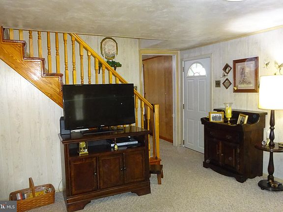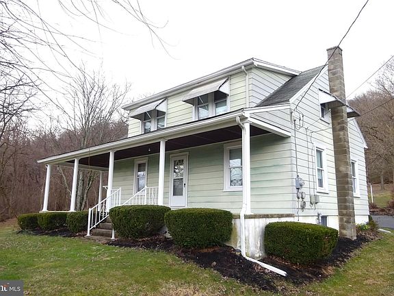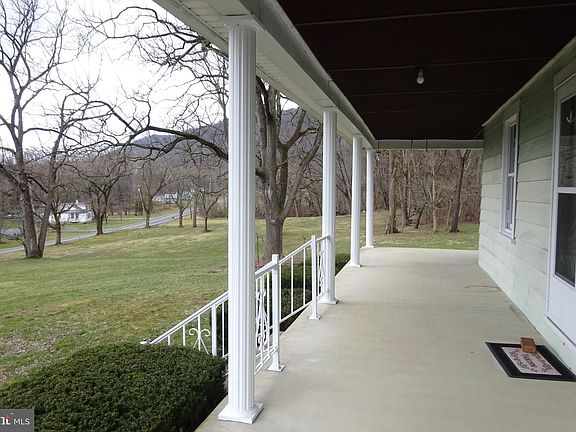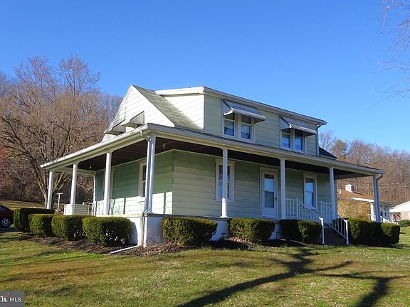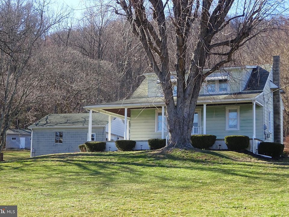 COZY HOME ON 1.4 ACRES! This 2 bdrm home w/wraparound concrete porch sits nicely off the road on elevated lot, giving it great curb appeal and views. The blacktop drive leads to 2 car detached garage and large parking area, perfect for car or hobby enthusiasts, plus there are 2 other storage building that are in good condition. The wooded backdrop of the mountain provides privacy in back. This home has been well kept with replacement windows and all appliances conveying. Office/DR on 1st floor could be converted to 3rd bdrm. Adjoining 1.8 acre lot w/access to public sewer available for $59,900. Due to bridge construction, you must go Rt. 75 to Long Lane to Mountain Road.