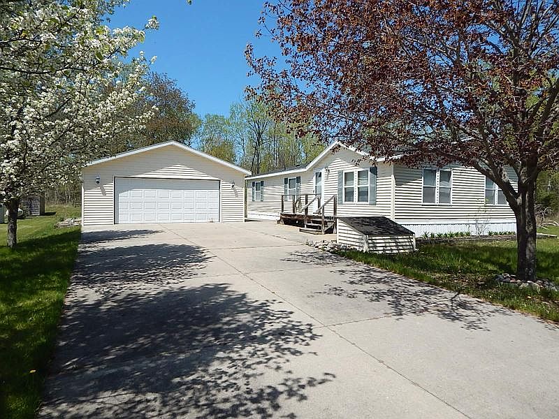 Nestled comfortably amidst many desirable homes, and right across the street from Lake Huron, this 1993 Carrollton Manufactured home boasts lovely curb appeal with flowering trees and perennial florals out front. The rear lot is wooded, offering additional privacy. The layout brings three large bedrooms, two full baths (one is an en-suite), a spacious living room, a nice sized kitchen with an island, and dining space to the side. Add your own interior finishing trim work if desired. This home is clean and turnkey ready! Included in this sale, conveyed with a Warranty Deed, will be the two lots with the home and garage (78'x250'+/-), and an adjoining, bonus half-lot (64'x125'+/-) that will transfer via a quit claim deed. The 2.5 detached garage allows for plenty of workspace with lots of room for toys. Very nice parcel of land in a wonderful, peaceful community. Easy drive to Oscoda, Harrisville, Alpena, or the Black River park/boat launch. Perfect for a second or summer home, retiree, or even an investment. This property is a cash sale opportunity only. Some furnishings may stay.
