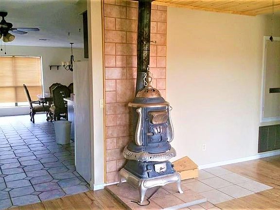 This Remodeled Ranch-style home offers three large bedrooms and two baths, a spacious kitchen and dining room, extended living room with antique replica pot- bellied wood stove and a bay window showcasing serene views. Master suite is oversized and contains a walk-in closet, separate seasonal storage closet, and office alcove. New windows. Screened porch. Outside storage. Almost 3 acres with some pasture. Partially fenced. Livestock allowed. No restrictions.