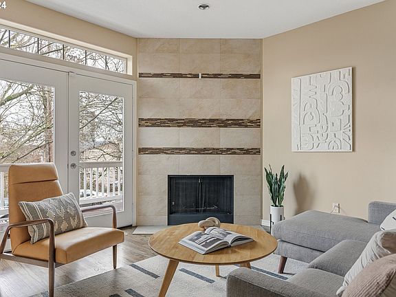 Nestled in an idyllic location with a commanding view of the Willamette River and the picturesque South Waterfront cityscape, this meticulously updated row house offers an array of amenities. Fully remodeled gourmet kitchen, featuring stainless steel appliances, high-end cabinetry, granite countertops, an expansive island, and cozy nook. Living room with a gas fireplace provides french door access to a covered deck. Upstairs, two primary suites await, with laundry in between. The lower level unveils a two-car tandem garage, accompanied by a versatile space ideal for a workshop or hobby area. Built-in storage cabinets line the entire length of the garage, ensuring organizational convenience. Take a leisurely stroll around the corner to Ross Island Grocery and Cafe for a fresh deli sandwich and beverage of your choice or pivot down the hill to the waterfront trail, where you can watch rowers pass by, completing the perfect living experience in this remarkable abode. No HOA. [Home Energy Score = 8. HES Report at https://rpt.greenbuildingregistry.com/hes/OR10225490]