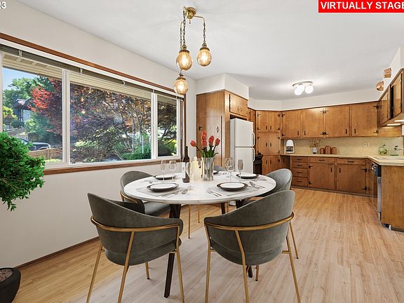 FAB LOCATION! Mostly main level living w/minimal steps to access main floor. Large living room, family room/dining that opens to a large patio, big windows view the beautiful, level over 1/4 acre yard, kitchen includes freestanding refrigerator, nook and 3 beds all on main floor. Lower level with easy to navigate exterior access includes 4th bedroom, bathroom/laundry includes washer/dryer, updated bonus room with wet bar including refrigerator, and new certified woodstove insert, updated bathrooms. Newer roof, laminate flooring, newer gutters, furnace, water heater, AC, certified woodstove insert, windows and driveway / drainage - HES is 7!. Incredible fenced yard, shed, large patio for entertaining, oversize 2 car garage has built-ins for storage and a workshop w/work bench and storage built-ins. Quiet cul-de-sac lot views trees and a peek of the backside of the West Hills. Extra wide driveway includes side parking pad perfect for small RV/Boat/toys. Perfect home for multi-gen, or just extra elbow room! Near parks - including Gabriele Park, SW neighborhood pool, shopping in Hillsdale or Multnomah Village, minutes to downtown, I-5, OHSU. See floor plan in photos. [Home Energy Score = 7. HES Report at https://rpt.greenbuildingregistry.com/hes/OR10215647]