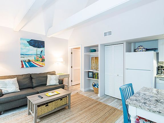Nestled slightly back from the beach within a maritime forest, this villa is located within the revitalized West Beach Village with easy access to the beach, The Sandcastle homeowner's amenity, golf, dining, shopping, and more. This fully renovated villa offers bright, cheerful, interiors with coastal-inspired touches, such as Italian porcelain tile flooring and beadboard wainscoting. Vaulted ceilings with exposed beams accent an efficient open plan that maximizes natural light, storage, and livability. The comfortable main room offers direct access to the screened porch, which looks out over a lush canopy of native hardwoods. The kitchen, which is open to the living room, has granite countertops with tile backsplash, new cabinetry, and a breakfast bar with seating for two. An ideal rental unit, this turnkey villa is offered fully furnished.