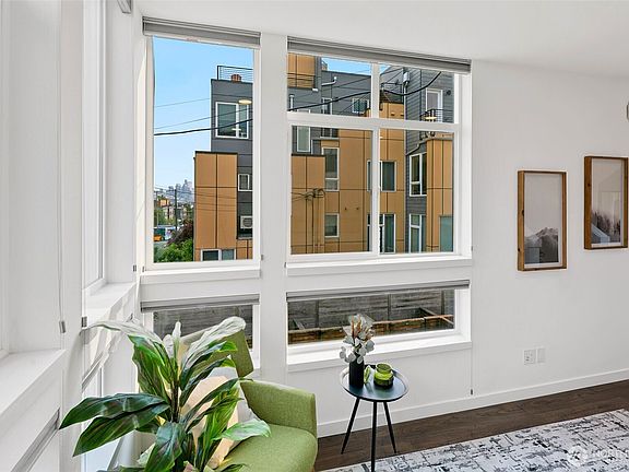 Perfectly positioned in the heart of Wallingford, this pristine end-unit home offers sweeping views of Downtown Seattle & Lake Union. South-facing & drenched in natural light, the home shines w/ all-new flooring, fresh interior paint, & custom blinds. The entry level features a spacious bedroom, full bath, & versatile den/office. The main level impresses w/ a generous living area, captivating city views + sleek kitchen w/ pantry & dining. The top floor hosts a luxe primary VIEW suite w/ large WI closet & en-suite bath. Retreat to the expansive rooftop deck, upgraded w/ new decking & take in iconic panoramas of Mt Rainier, Lake Union, & the sparkling skyline. With no HOA, gated parking & unmatched walkability, this home is truly exceptional.
