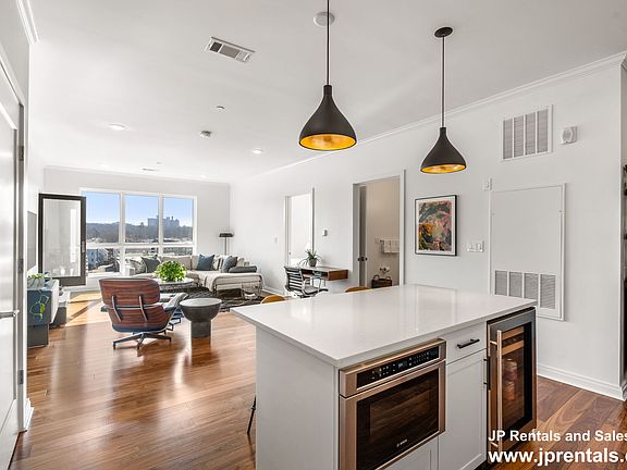 Available April 1st Discover this rare 1170 sq ft, 2-bedroom, 2-bathroom gem boasting stunning views of Franklin Park from a premiere, concierge-serviced building. This unit has been thoughtfully upgraded to offer modern luxury and convenience throughout. Step inside to an expansive, open concept living space that seamlessly flows into a gourmet eat-in kitchen. Enjoy premier Bosch stainless steel appliances, a sleek breakfast bar, ample cabinetry, full range hood ventilation, and elegant quartz countertops. Floor-to-ceiling Hunter Douglas motorized, energy-saving remote control blinds in the living room and both bedrooms set the stage for effortless style and privacy. Retreat to the bright and airy primary suite featuring a custom walk-in closet and a spa-like en-suite bath with a walk-in shower, all bathed in natural light that highlights the refined finishes throughout. Additional highlights include: Exclusive Amenities: Private balcony, in-unit laundry, a central ERV Fresh Air system with hydro air, central AC and heat with WiFi app control, plus a Lutron Caseta Smart Lighting system (compatible with Alexa, Apple Homekit, and Google Home). Convenience: 1 heated, assigned garage parking spot complete with a private EV charger. XL 3' x 5' x 10' Storage: Available for an additional $65 per month. Building Perks: Full-time concierge service, an elevator, a roof deck with a grill area, a club room with common Wi-Fi, bike storage, and a pet spa. Lifestyle Perks: Enjoy on-site access to Planet Fitness, Pure Dental JP, and Third Cliff Bakery just downstairs Utility Details: Water is included; tenants are responsible for electric, gas, and internet. Lease Terms: 12-month lease with a security deposit equal to one month s rent. Broker's Fee: Full Pet Policy: Pets negotiable. Nestled in a prime location, just 0.5 miles from the Green Street T and 0.3 miles from Forest Hills with shops and restaurants at your doorstep this unit offers an unparalleled living experience that truly sets you apart. Don't miss your chance to call this exceptional unit home. Schedule your viewing today! FIRST, SECURITY, BROKER FEE DUE W/LEASE, $250 MOVE IN/OUT FEE. NO PETS, SORRY.
