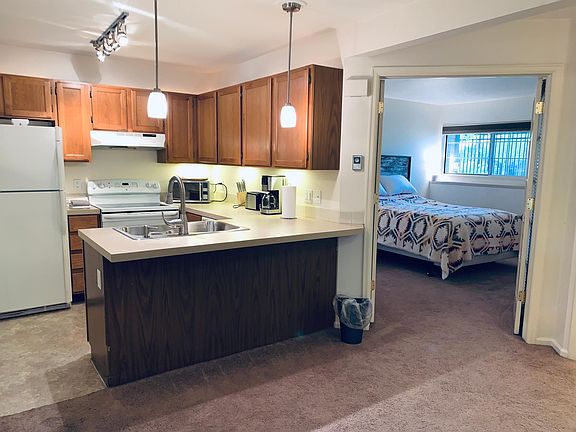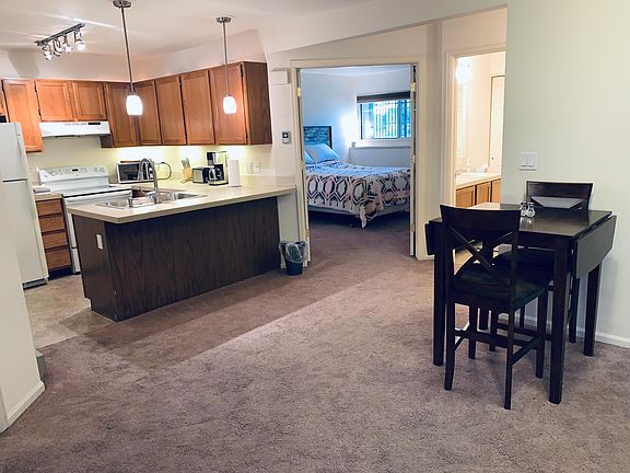 AVAILABLE NOW!! This FURNISHED 2 bedroom end unit condo is located in the quiet Chestnut Village Condominiums, S/W Fort Collins. Close to CSU, Front Range, the bus stop and bike trails. Come see this cozy condo tucked in off of Horsetooth & Shields. Updated counter tops, sink, plumbing fixtures, new custom designed lighting in the kitchen AND new light fixtures throughout. Updated windows too! Enjoy no steps in this 1st floor condo with open floor plan, vaulted ceilings, skylight, french doors and desirable wood burning fireplace. Window coverings, electric range/oven, dishwasher & refrigerator included. For added convenience the washer & dryer are included and the HOA does a GREAT job caring for the landscaping, snow removal and trash. 1st month, last month and deposit due at signing. Non-smoking. 1 dog considered with additional $300 deposit along with a $35/mo pet rent. (Breed/size restrictions apply)