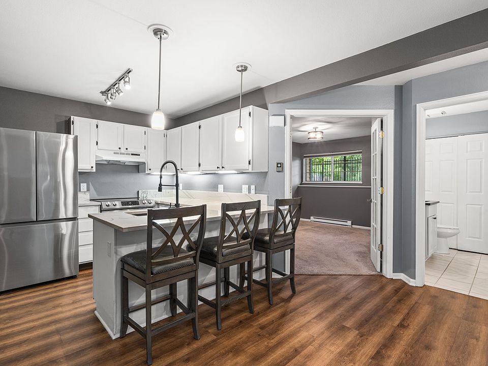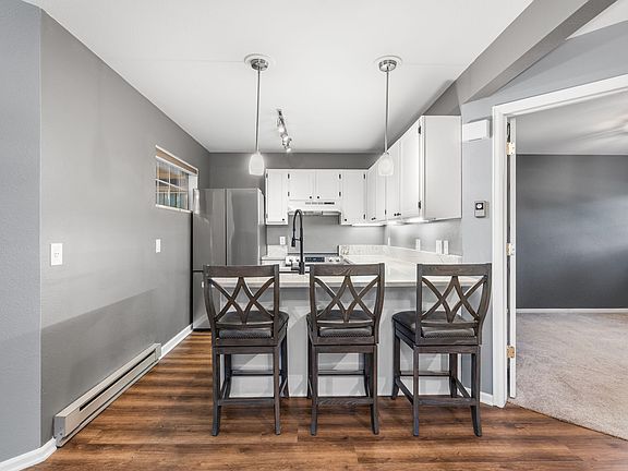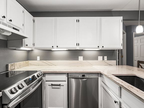 Inquire for showing availability! Discover modern living at Chestnut Village! This 2-bedroom, 2-bathroom condo offers a seamless blend of style and convenience, making it ideal for comfortable living. Step inside to find a fully updated kitchen with quartzite countertops and all-new stainless steel appliances. Fresh LVP flooring and carpet flow throughout, complementing the redesigned bathrooms which feature elegant stone countertops and custom tile work. Peace of mind comes with a new hot water heater and updated plumbing fixtures. Enjoy the ease of no steps within the unit, plus the inclusion of a washer, dryer, and portable AC. High-speed Fort Collins Connexion fiber cable is ready! Its prime location, only minutes from CSU Campus and easy access to restaurants, shops, and trails. Dont miss out on this one! Owner pays for water. Renter responsible for utilities and wifi. $100 fee per pet, up to 2 pets. No Smoking. No assigned parking spaces but plenty of parking around the complex.