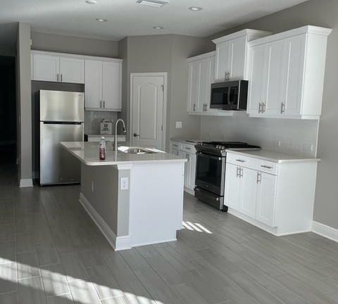 Amazing home at Silverleaf Community! Open floor plan featuring 3 bedrooms with walk-in closets, 1 den and 2 bathrooms. Gourmet kitchen with an island and walk-in pantry and equipped with new stainless-steel appliances. Utility room with laundry sink and washer-dryer included. Master suite located at the back of the home for extra privacy, featuring a connecting bath with walk-in shower, dual-sink vanity, walk-in closet, and linen closet. The house also has a 2-car garage. Smart home system enhanced for thermostat control, smart entry door, video doorbell and Wi-fi pre-wiring. Gated community with beautiful landscaping and tree-lined streets. Amenity center: clubhouse, resort-style pool, sauna, fitness room, children's playground, basketball courts, dog parks and trails. No smoking inside the house. Tenant is responsible for all the utilities: water, electricity, gas, internet and lawn. Association application fee $100 for up to two people. up to two pets no more than 25lbs and one time pet fee of $250.