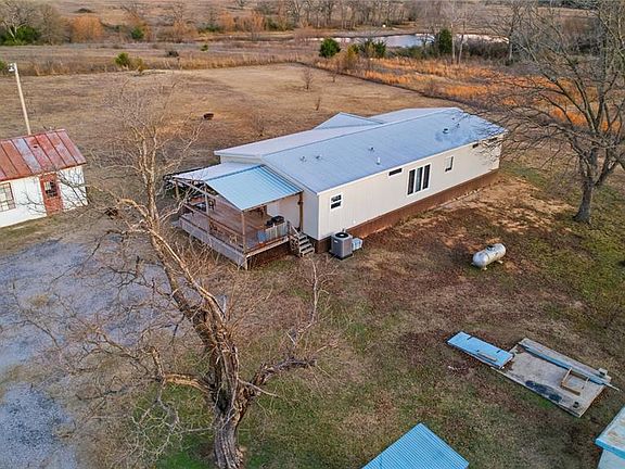 Welcome to your little slice of Heaven in the country only 2 miles from the beautiful Konowa Lake. Not only does this like new house have 3 bedrooms & 2 bathrooms, but there's also an office in the hallway with a built in desk & cabinets, perfect to work from home, do homework or place the mail. Modern farmhouse vibes are what you'll feel in the living room with the shiplap wall & LVP flooring. The open floorplan is great for entertaining & there's room for a large kitchen table, plus tons of storage in the kitchen as well as seating around the island. You'll love the metal farmhouse sink with a window above it, so you'll have a lovely view while rinsing dishes. The laundry room is huge with lots of storage, a sink & even room for a fridge or freezer. The primary suite has a bathroom with double sinks & a large soaking tub. The house is all electric with central heat & air plus additional propane heat & a hookup for a gas stove. Outside there's a shop, as well as a covered carport & storm shelter to help keep your family & vehicles safe from weather. Come see how serene this fully fenced homestead is with 4 acres, lots of trees & beautiful Oklahoma sunsets. Enjoy not having a water bill thanks to the well that also has a salt water ecosystem filtration for the whole home.