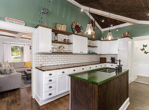 **OPEN HOUSE - Sun. Sept. 13 - 1-3:00** COUNTRY FEEL in the City! CHARMING home filled with character, complete with covered wraparound porch, sitting on almost ½ ACRE in town! SPACIOUS remodeled kitchen with loads of shaker cabinets and vaulted ceiling, Hardwood flooring throughout, reclaimed barnwood accent walls, vaulted and coffered ceilings, all add to the appeal. French doors from bedroom to large deck overlooking HUGE PARK-LIKE, treed yard, relaxing sitting areas, bonfire pit and large fenced back area. Double driveway wraps around house. Furnace, AC, gutters, bath remodel ? 3 years. Roof, tankless hot water, kitchen remodel and most windows within 5 years. Great location and only a hop, skip and jump away from the Macomb Orchard Trail for walking/running, biking, and skating enjoyment.