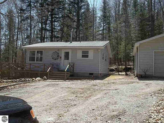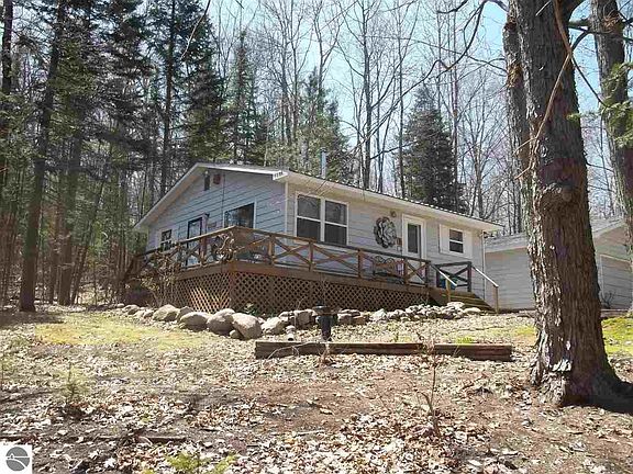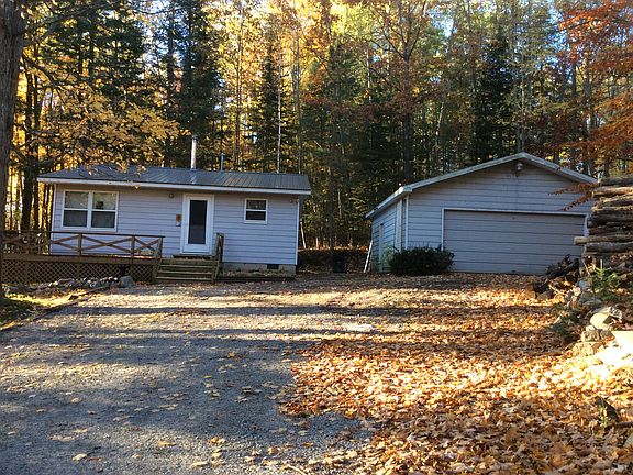 What a view from this nice cottage on a corner lot. The lake is just across the road and private access sites are within walking distance each direction. This is a no-wake lake for fishing only so come on up and enjoy the peace and quiet. The kitchen and bath have been remodeled. The living room and two bedrooms only need floor covering. There is a nice detached two car garage, a large storage shed and a wood shed so you are always ready to use the wood stove. The metal roof, furnace and air conditioning are fairly new. A third lot is available for an additional $9,800 (75x234).