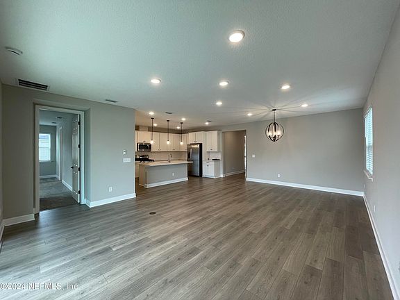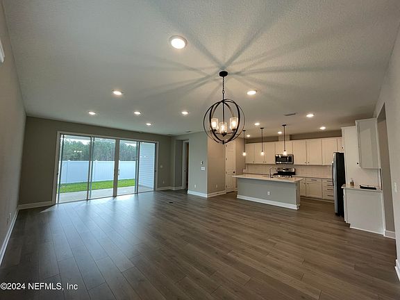 Waterford Ranch at Oakleaf. Spec home by Richmond American. The Slate floor plan features an open concept with a 3-way split bedroom arrangement. Relax on the front covered porch or the rear covered patio. The well appointed kitchen features 42 inch upper cabinets, quartz countertops, stainless steel appliances, walk-in pantry, and a center island. The primary suite features a generous sized walk-in closet and a private bath with dual sinks, and tub with a separate shower. The 4th bedroom is en-suite. Luxury vinyl plank flooring throughout except carpet in the bedrooms. Waterford Ranch at Oakleaf is a natural gas community.