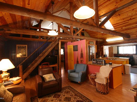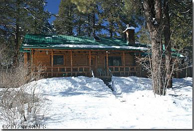 This authentic log cabin with T&G ceilings sitting on a heavily treed lot backing greenbelt is the perfect opportunity for your ski lodge. Located in Kachina Village, you'll be away from the city and still only moments from in town amenities. Featuring 3 bedrooms (plus and additional loft), 1.75 baths, 1512 sq.ft., TWO wood stoves, skylights, large covered deck, tons of storage, a metal roof PLUS endless possibilities, as there is a one car garage with a loft and a bathroom that has already been started.