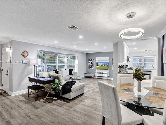 Don't miss out on the opportunity to own this meticulously upgraded home where no detail was overlooked. Impact Windows and doors ensure both safety and energy efficiency. Crown molding elegantly frames each room adding a touch of sophistication. The kitchen features recessed lighting, porcelain floors and dove-tail soft close drawers, making it a dream. Additional upgrades include w/h, custom blinds and knock down textured walls throughout. The living room, bedrooms, and back Florida room have all been enhanced with new flooring, providing a fresh & modern look. The separate laundry room offers added convenience, with ample storage space and a side entrance. Gutters and fully fenced backyard with brand new sod. Carport and plenty of parking options. Agents please see BK remarks.