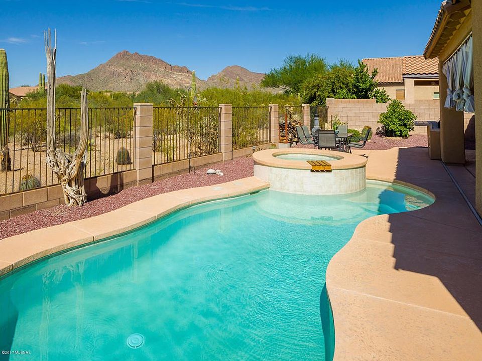 This gorgeous Lennar 4 bedroom, 2 bath home has a spacious open floor plan with upgrades throughout. Engineered hardwood flooring in living areas. Master bedroom features large walk-in closet, luxury bathroom w/dual head walk-in shower, large dual sink vanity and pullout laundry baskets in cabinets. Built in storage in every bedroom. Large den serves as media room. Heated Salt-Water Pool and Spa w/upgraded equipment, built-in BBQ & refrigerator are ideal for entertaining. Roomy laundry room with storage. Extra deep three car garage has built in workshop. Minutes away from Tucson Mountain Park, Desert Museum, Saguaro National Monument West as well as easy drive to I-10, I-19 and Raytheon. Schedule a private showing today.
