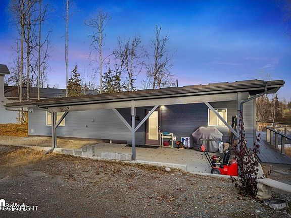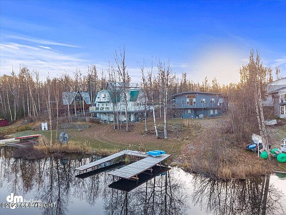 Rare opportunity to own a lovely lakeside retreat that has been completely remodeled just under 4 years ago. This stylish home has lots of natural light and views of Big Lake and Denali. Modern kitchen features custom cabinetry, Bosch stainless appliances, quartz countertops and tiled backsplash. Exterior features composite decking with wire railing, concrete board siding, dock and a boat launch.