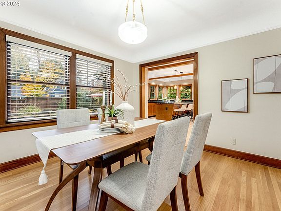 This classic Eastmoreland home seamlessly blends timeless charm with modern amenities across all three levels, complimented by a detached 2-bedroom ADU. Step inside to discover spacious rooms designed for comfort and versatility, starting with a main floor that boasts a bedroom and full bath, as well as formal living and dining rooms perfect for gatherings. The impressive kitchen serves as the heart of the home, featuring a generous cook island ideal for family get-togethers, homework sessions, or casual dining. French door opens to a deck & stone patio, creating a seamless indoor-outdoor living experience. Upstairs, the expansive primary bedroom includes a private balcony, while the third bedroom comes with a convenient office area, ideal for work or study. A full bath completes the upper level. The lower level, accessible through the home and also an exterior entrance, offers a versatile space with a fourth bedroom, a family/game room, a full bath, and a laundry room—perfect for extended stays or entertaining guests. Outside, mature landscaping and multiple patios provide a serene setting for outdoor enjoyment. The detached 2-bedroom Guest cottage/ADU/Office includes a full kitchen, full bath, and laundry, offering guest accommodations or potential rental income. This Eastmoreland gem is built to entertain and accommodate, both inside and out! [Home Energy Score = 7. HES Report at https://rpt.greenbuildingregistry.com/hes/OR10234092]