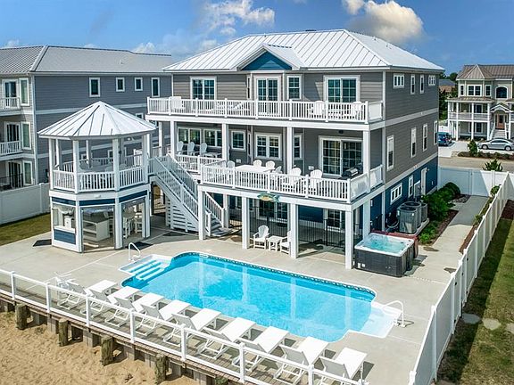 Exceptional oceanfront luxury meets proven income history in this stunning 9 bedroom, 9 full bath residence built in 2016. Designed for both elevated coastal living and high-performing rentals, this property delivers panoramic ocean views from expansive living spaces throughout. Each bedroom features its own private bath, offering comfort and privacy for owners and guests alike with 5 bedrooms having direct water views.The home is thoughtfully designed for entertaining on a grand scale, featuring a large open-concept living area + kitchen on 2nd level and a 1st level rec room with a pool table, bar and private movie theater. Enjoy a true coastal retreat where resort-style amenities create a serene outdoor oasis including an oceanfront pool, hot tub, and gazebo with sweeping views of the surf. With strong rental history producing approximately 350K in annual income, this property represents a rare opportunity to own a turnkey oceanfront investment w/o compromising luxury or lifestyle.