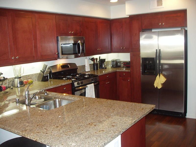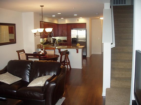 Beautiful spacious townhome-Big kitchen with granite counters,rich cabinets, stainless appliances and pantry opens to formal dinning area. Living room has fireplace and a balcony for entertaining.Huge master bedroom suite on top floor with his and her walk in closets- mirrored doors and large master bath. LOTS of upgrades -plantation shutters.Big laundry room. Over sized attached 2 car garage. Complex has pool, play area. Close to lots of shopping and easy access to freeways. Ride your bike to the beach.