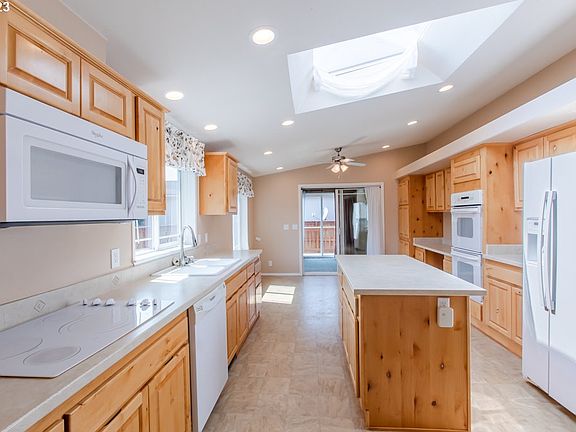 - Features: Builtin Range, Ceiling Fan, Dishwasher, Island, Microwave, Pantry, Skylight, Builtin Oven, Double Oven, Free Standing Refrigerator, Vinyl Floor