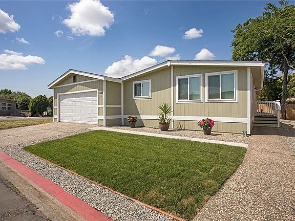 Welcome to your beautiful new home! Even though this Roberts Manufactured home was built in 1982, it shines like new! Why? Because the owner has skillfully installed new roof shingles, new Heating and Air Minisplits in every room, new water lines, new hot water heater, new electrical panel, new drywall, new windows and doors, new landscaping and sprinklers, new fencing, and a new garage door. But wait...there's more! All new lux vinyl plank flooring throughout, completely remodeled kitchen and bathrooms, all new appliances and light fixtures. It is like a brand new house. Where can you find a beautiful home with a yard, a two car garage for under $150,000 in Chico? In the Rancho Chico Mobile Home Park in north Chico! This all ages MHP has a community pool, a huge clubhouse, and is a well maintained park. Stop by the park manager's office to pick up the park rules and an application, because you must be approved by the park in order to buy a home in there. Space rent is currently $738 per month.
